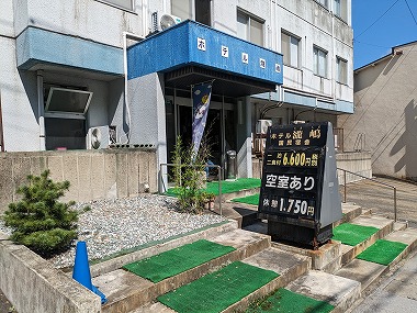 そして最初の目的地はこちらのホテル瀧嶋。実は初訪問でございます(笑)。くすり湯が万病に効くとか何とかですので(ご主人談=あとで聞きました)、血圧とγ-GTPにも効くはず効いたはずなので「ミニ湯治」であったはずです(無理筋)。 |