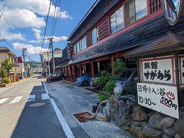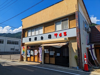 旅館すがわらの前を通ってすぐ先の「菅原分店765」へ。ここで昼飲み&軽いランチをと企んでいたわけです。お店自体はGWに温泉師匠ほかご一行と訪問していましたし、SNSでも経営者のカンアヤさんとはつながっています。念のため事前に営業確認の電話もしておきましたので今回は万全の準備です。 |