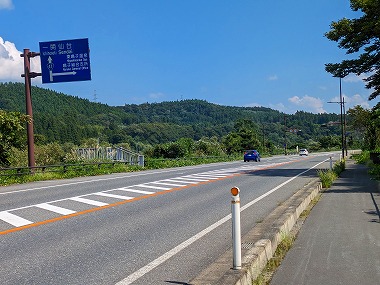 ここからは国道を歩き、東鳴子の温泉街を歩いて東鳴子御殿湯駅を目指します。うーん、知り合いのお2人はさすがにもうおられないだろうなと思いつつ千両前を通過しましたが、上でも書いたようにこの日の鳴子は晩夏の猛暑モードでありました。 |