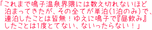 ということでありました(ちなみに「中一日空けて計2泊」というのはありましたが@2014年末=この時です)。 |
