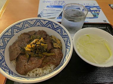 ![]() ハイ、長者原SAにてめでたく日の出となりました。 ![]() 朝ごはんは牛タン丼。ご飯は少なめにしてもらいました。 |