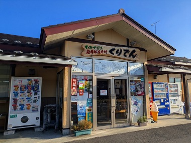 駅の隣には直売所くりでんがあり、まだ開店前でしたが車を駐めさせてもらって駅周辺を見学です。駅舎は古いながらもしっかり手が入れられていて(乗車会の時は実際に使ってもいるでしょうし)、廃駅という感じはしません。そしてあちこちの角度から見ていくと‥ |