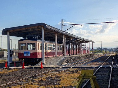 ん?パンタグラフ付きの電車!1995年に電化が廃止される前まで走っていた車両でしょう。保存状態も屋根があるおかげで良さそうですが、もはや走らせることは出来ませんね。そもそもここ若柳駅の西側には車止めが設置され、この先には物理的にも行くことができません。 |