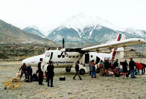 めでたくジョムソンの飛行場に降り立った。予想通り未舗装だ。