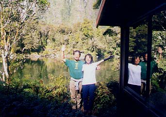 で、何日かを一緒に過ごしたトランパーの方々とはここでお別れ。皆さんはこの船に乗って終点ミルフォードサウンドまで帰ることとなる。雨の日などはそりゃこの船の方が絶対いいに決まっているのだが、我々は行きの船の中でシーカヤックの予約をしているのだ。今日も快晴であるだけに大正解!