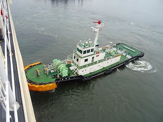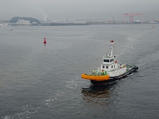 ![]() やがてしらせは横須賀港入港モードへ。巨艦ゆえタグボートが接岸のお手伝いにやってきました。 ![]() |