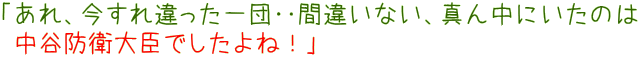 | という発言でした(びっくり)。急いでふり返ってみると確かにあの白髪頭は‥。調べてみたら、中谷氏はここ防衛大学校の卒業生なんですね。なるほどぉ(まあシビリアンコントロール下の日本ではそれを問題視することもありませんし)。 |