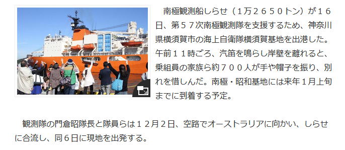 | 砕氷艦「しらせ」の道中および南極での任務完遂を祈りつつ、この体験航海搭乗記をおしまいにしたいと思います。頑張れしらせ&搭乗員の皆さん! |
