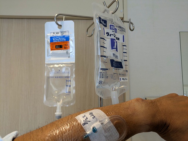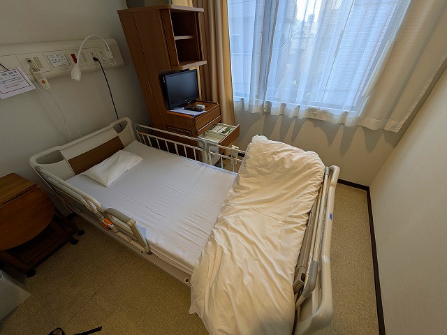 病室に戻りましたが、まだ起き上がりの許可が出ておらず(というかいろいろと管が突いているので物理的にも無理)、そうなるとこんな画像しか撮れないわけです。 |