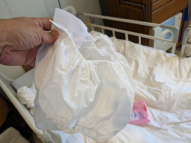 弾性ストッキング。もちろん初めて履きますが、医療用のストッキングで足先のむくみや血液の対流を抑止する(いわゆるエコノミークラス症候群を抑止する)ためのものなのだそうです。手術は全身麻酔なのでたぶん身体機能の多くがわやくちゃモードに入るがゆえにこういう防止策も必要なのでしょう。もっとキツイ感じかと思っていましたが案外しっくり。 |
