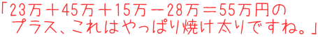 以前にその恩恵に与った方からも聞いていたので間違いはないでしょうというわけで、15000*5=75000円も意に介さずというわけでした。結果として総費用の全額よりはやや少ない額しか出ませんでしたが、トータルでいけばまぁ十分でした(後述)。 |