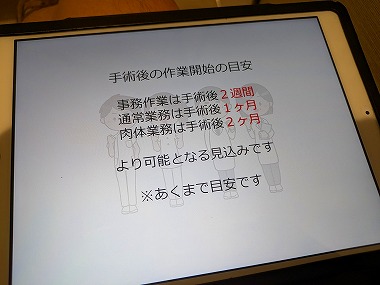 8月下旬に手術の予約をしたのですが、その事前説明時(上画像の時)に次のように言われました。 |