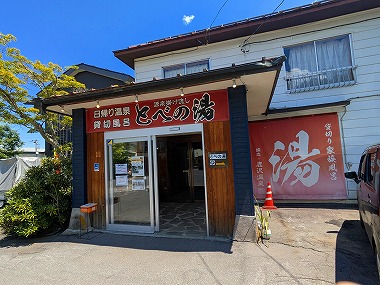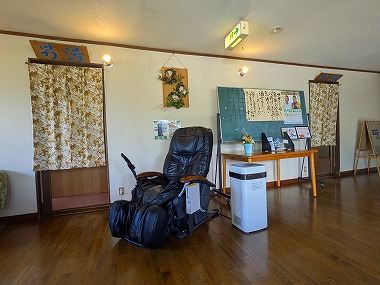 さすがに加水はやむを得ませんが、それにしてもこの湯温105度は裏山椎。栗駒山麓の駒の湯に3度くらい分けてほしいくらいですがそりゃ無理か(苦笑)。わずかに硫黄臭があり多少の塩味。右上画像のような寛ぎ場もあるので楽しめそうですが如何せん時間がっ! |