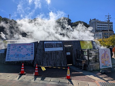 というわけで湯上がりには猛ダッシュ右足やや引きずり歩行にて駐車場まで戻り出発時間に間に合いました。小浜にしろ雲仙にしろいやそもそも北九州にしろ、そのうちじっくりめぐってみたいところです。 |