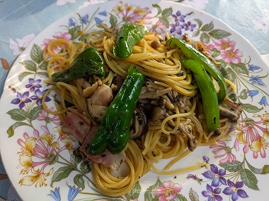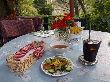 ![]() ![]() ![]() この日は暖かくて外の席が気持ちよかった。 ![]() きのこのスパゲティセットとアイスコーヒーを注文。 |