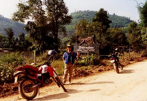 翌日は、ちょっくら毛色の変わったことを・・ということで、象でも乗りに行くか、ということにする。少数民族の村を巡る現地ツアーなどに参加すると必ず「エレファントライド」が含まれているものだが、日帰りというと何だかやたらメジャーなところに行くしか方法がない。目指すルアミット村は、まあメジャーであるとはいえそこに行く公共交通機関がろくにないことから、少しはマイナーだろうということで決めたのだ。チェンライから村まではさしたる距離はないのだが、ダート道が長い。もっぱらオンロード派のtakemaは、先輩においてけぼりを食うが、ここまで来てしゃかりきになるのも何だし、まだ足も痛いから仕方ない、と自分に言い訳することにしてマイペースで走る。ここのダートは完全に土ダートで、粒子の細かい赤土のホコリは、一度立ちのぼるとなかなか静まらない。ジャケットは服のシワそれごとに模様が付いてしまう。かといって、うかつに雨期なんかに来たら Muddy で走れないんだろうなあ。