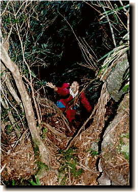 東屋のある蛇紋杉からは登山道となるが、概して整備が行き届いた歩きやすい道が続く。登りの傾斜もしばらくはそれほどきつくないのでのんびりと歩けるのがありがたい。道の脇には昔伐られた大木の根がころがっており、中には人が入れる程の大きさのものもいくつかある。そうそう、水は途中荒川の支流を渡るところで得られますが(奥の吊り橋経由で行く場合)、それより上はないことが多いと思われるので持参したほうが無難です。