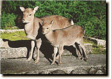 駐車場で出発の準備をしていたら屋久シカの親子が出てきた。コンクリの台の上でゆっくりしているので、なんだか