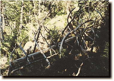 右の倒木の写真、勝手に「恐竜のあばら骨」と名付けた。